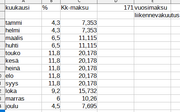 Tein kyselyn tyttären mopolle liikennevakuutuksen vuodenaikahinnan jakautumasta ja pistin laskimeen nuo prosentit. Siitä tulee tuommoinen jakauma kun tytön Kymco Super8 liikennevakuutus maksaa 171€ vuodessa.